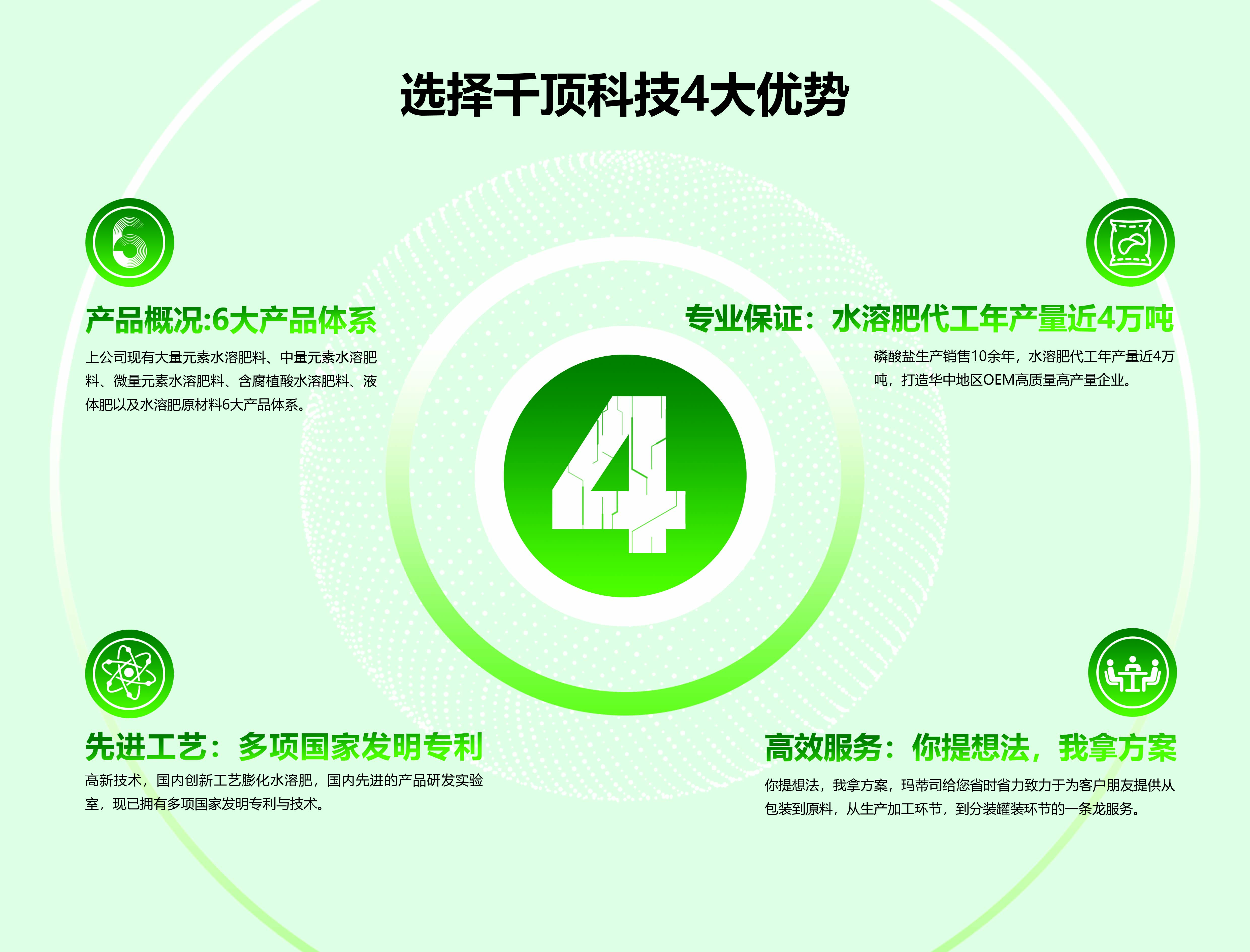 湖北千頂科技有限公司位于九省通衢,美麗的江城武漢,是一家專業從事研發、生產、磷酸鹽和高端水溶肥等一體化工企業,是一家致力于打造農業與工業攜手進步的化工企業...